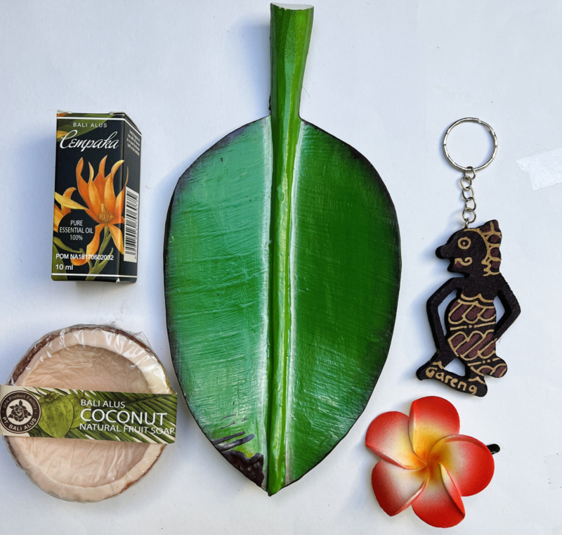 Artikelnummer: 000012-24-3 OverzichtTasje vol unieke Bali artikelen: