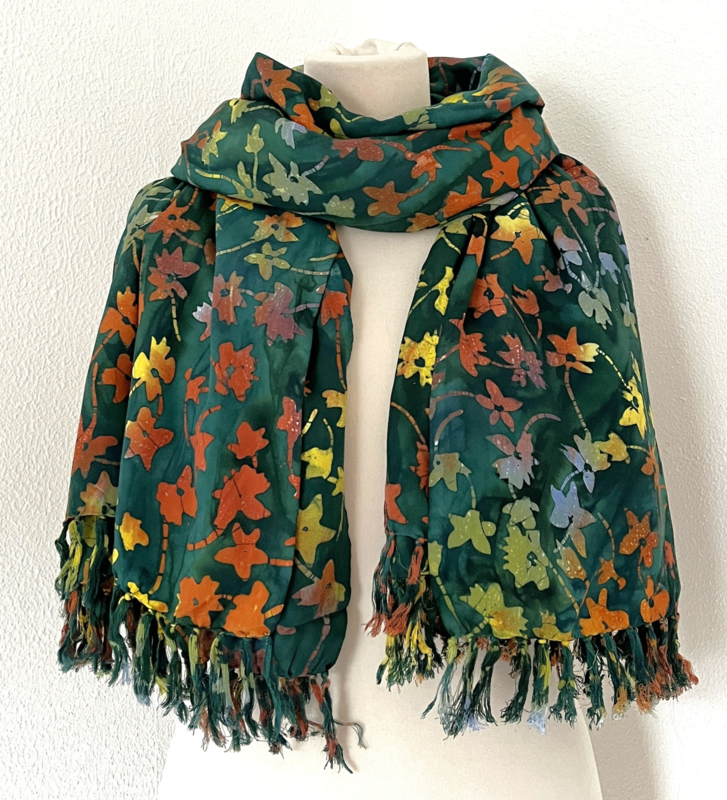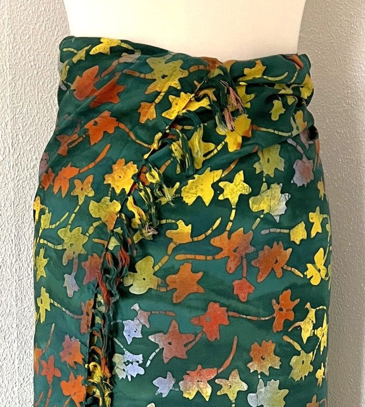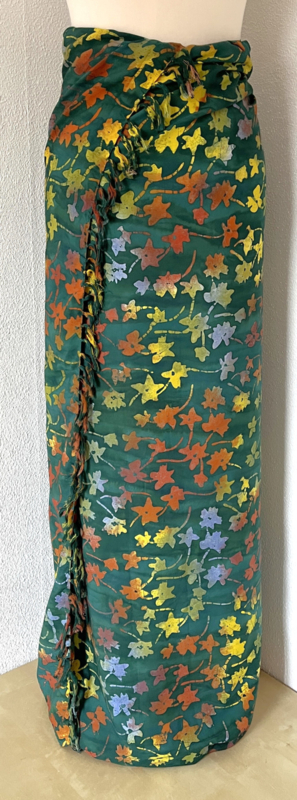 Uit de Busana Agung collectie en gemaakt met de BingBatik techniek uit Indonesie. 120 x174 cm. 100% rayon. Wasbaar op 30 graden. Met sarongknoop.
