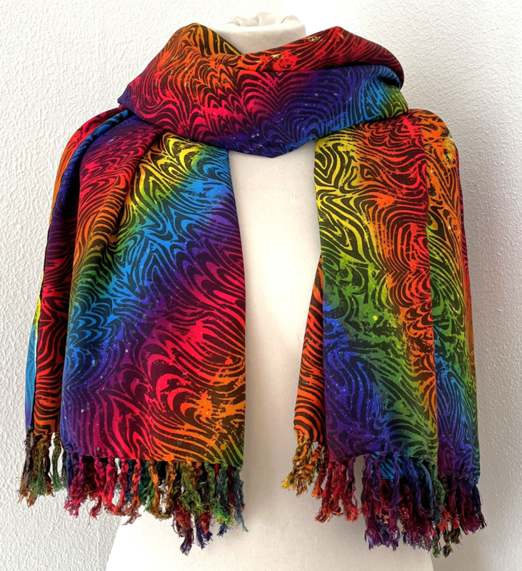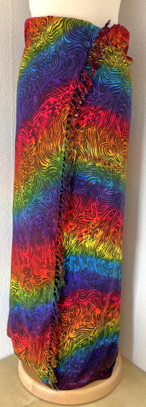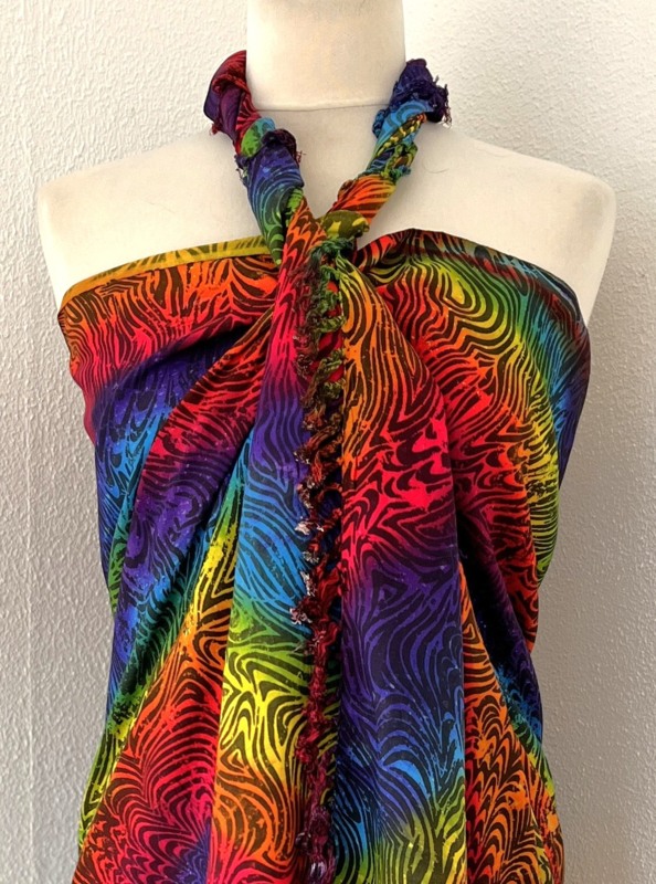 Uit de Busana Agung collectie en gemaakt met de BingBatik techniek uit Indonesie. 120 x188 cm. 100% rayon. Wasbaar op 30 graden. Met sarongknoop.