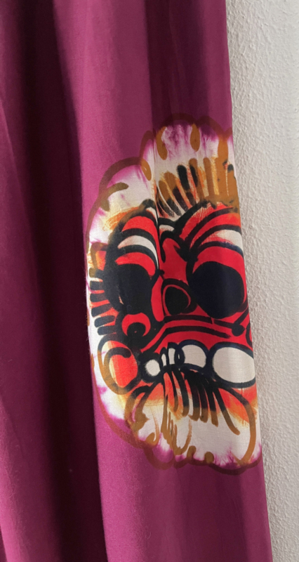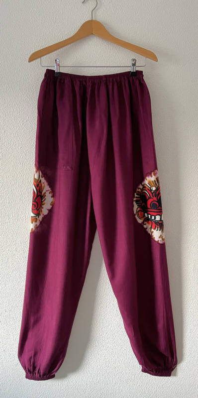 Met elastiek in taille/ heupband, sierkoordje voor, opgestikt zijvak en elastiek in enkels. Binnenbeenlengte 66 cm, Maat 44 100% rayon.