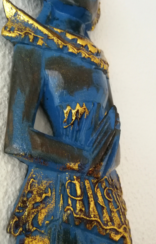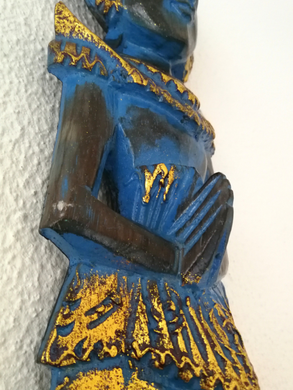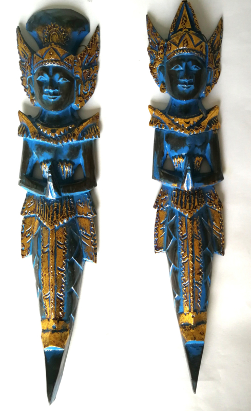 Artikelnummer: 544Q OverzichtTwee grote poppen die symbool staan voor de liefdevolle man die zorg draagt voor zijn vrouw. Inclusief het gehele verhaal op A4. Prachtig beschilderd houtsnijwerk. 53 cm x 13 cm. Set van twee. Met ophanglus.
