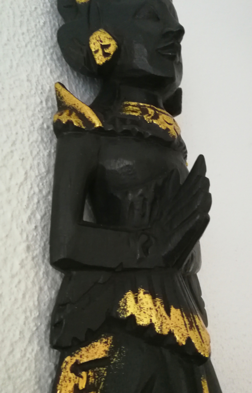 Artikelnummer: 544R OverzichtTwee grote poppen die symbool staan voor de liefdevolle man die zorg draagt voor zijn vrouw. Inclusief het gehele verhaal op A4. Prachtig beschilderd houtsnijwerk. 53 cm x 13 cm. Set van twee. Met ophanglus.