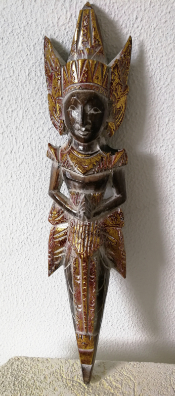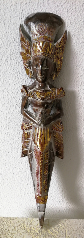 Artikelnummer: 544P OverzichtTwee grote poppen die symbool staan voor de liefdevolle man die zorg draagt voor zijn vrouw. Inclusief het gehele verhaal op A4. Prachtig beschilderd houtsnijwerk. 53 cm x 13 cm. Set van twee. Met ophanglus.