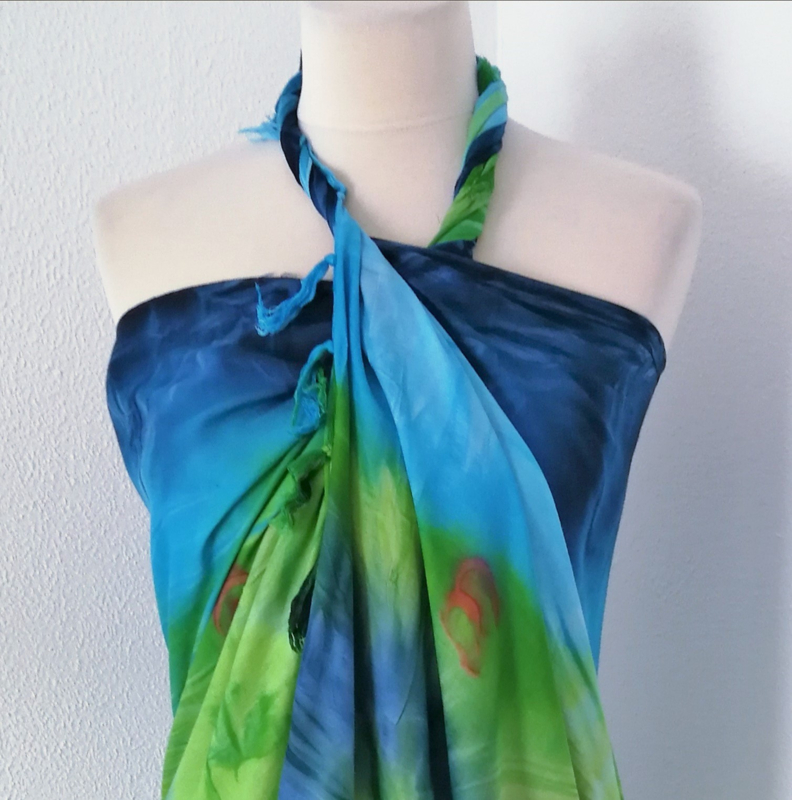 Artikelnummer: 461K OverzichtAfmeting 115x150 cm.100% Rayon (kunstzijde) wasbaar op 30 graden. Met sarongknoop.