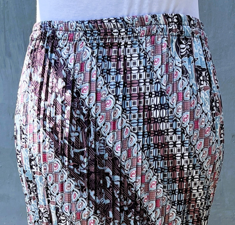 Met comfortabele loopruimte door de plissé. Nauwsluitend rondom de heup. Met elastische tailleband.